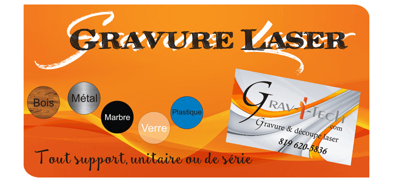 Grav-I-Tech est graveur de la région de sherbrooke, qui est spécialisé en gravure, marquage et découpe, grâce au laser, depuis 2006.