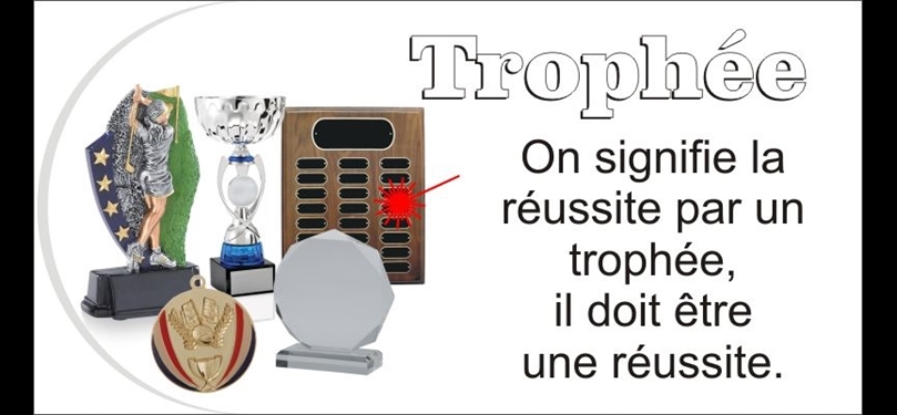 - Trophées, Plaques, Coupes, Médailles, Épinglettes,
